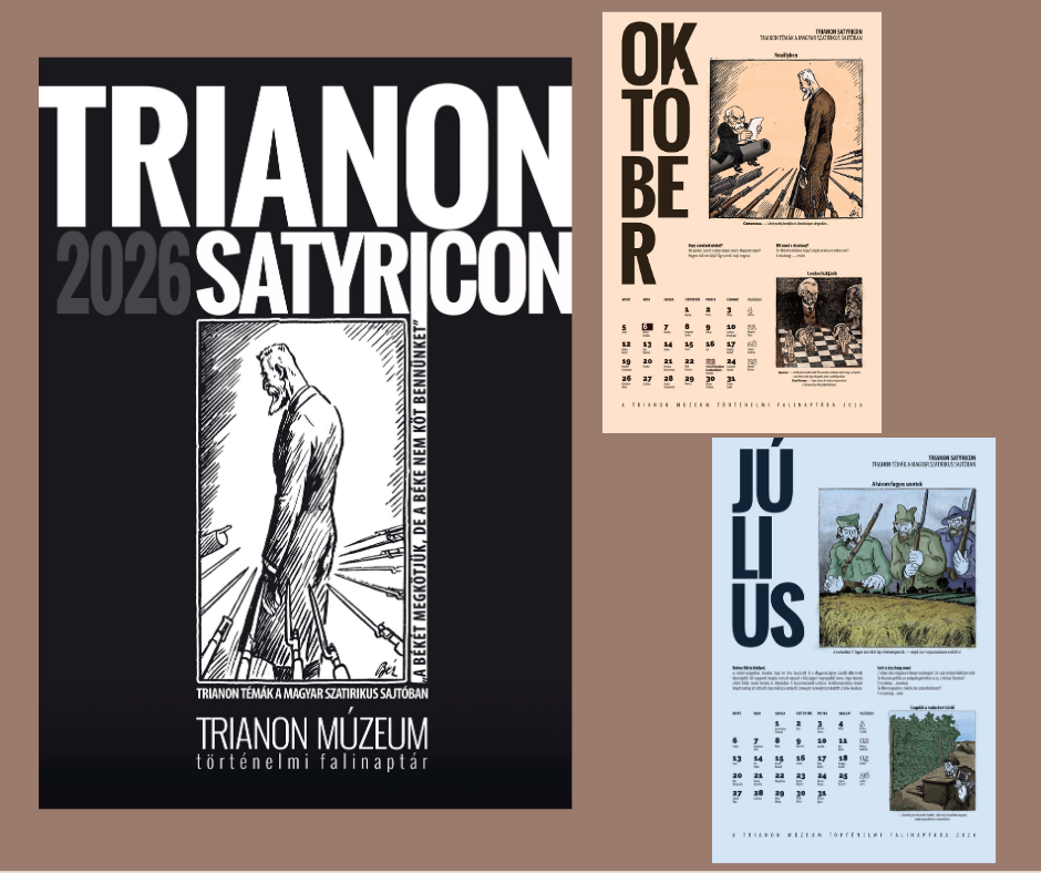 2006 óta hagyományőrző módon egy kiemelten fontos tematika köré rendeződve jelenik meg a Trianon Múzeum éves falinaptára. A 2026-os évben naptárunk a SATYRICON címet viseli. A falinaptárban található eredeti karikatúrák és szövegek a Borsszem Jankó című folyóirat 1918-as és 1920-as évfolyamából származnak.